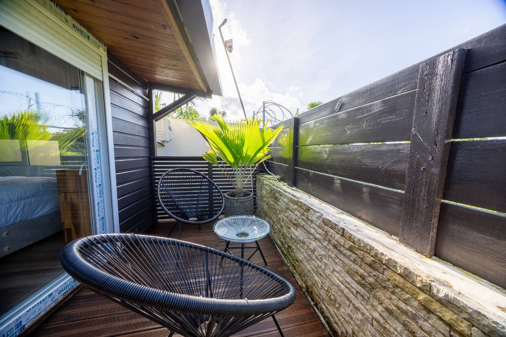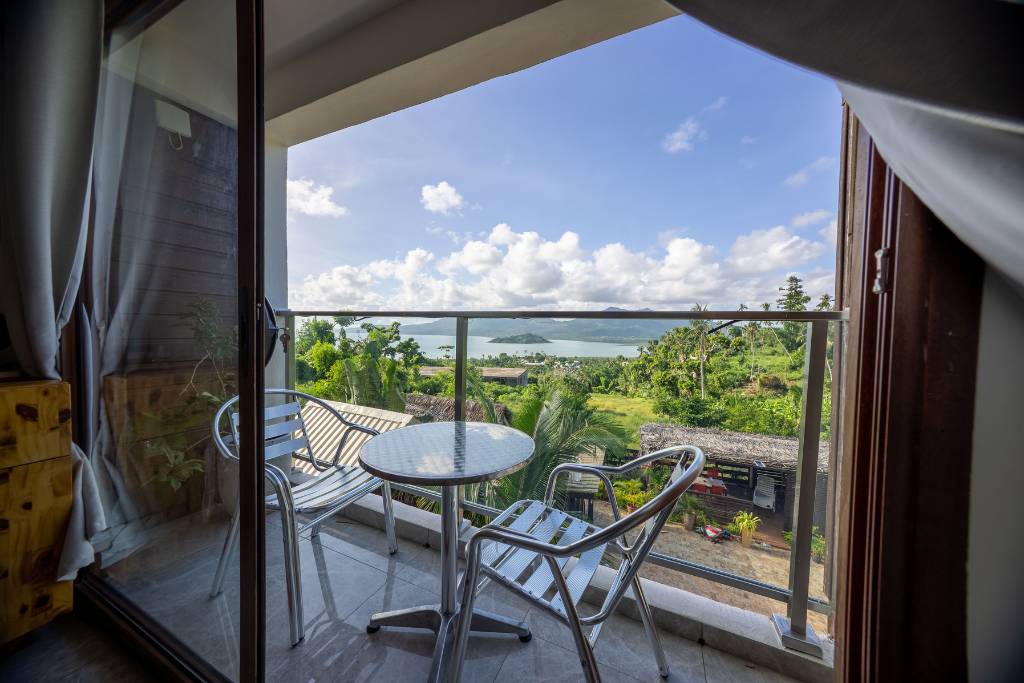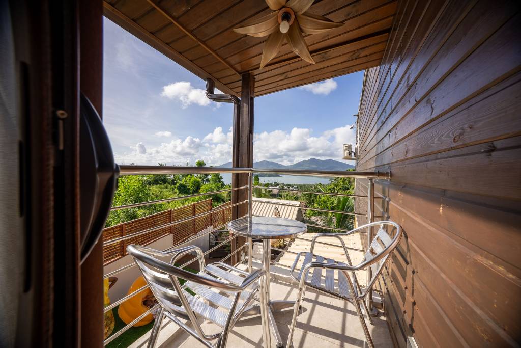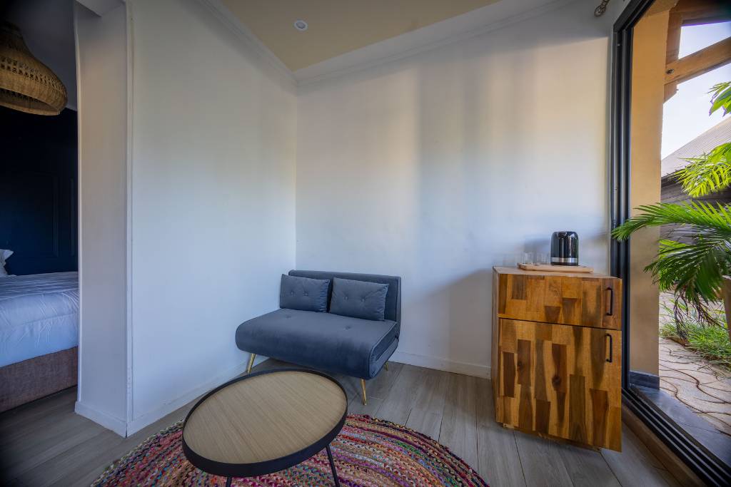 Salon lumineux et confortable avec vue sur la végétation tropicale – Résidence de vacances à Mayotte, Kazela